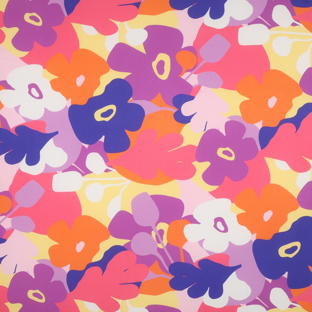 Runsaslilojen ja violettien sävyjen, hennon ruusunväristen vivahteiden ja kirkkaiden korostusten harmoninen yhdistelmä luo jännittävän kontrastin - joskus rohkean, joskus pehmeän, aina tyylikkään. Tämä kangas sopii kaikille, jotka rakastavat huomiota herättäviä, mutta helposti puettavia malleja ja haluavat lisätä vaatekaappiinsa erityisen katseenvangitsijan.