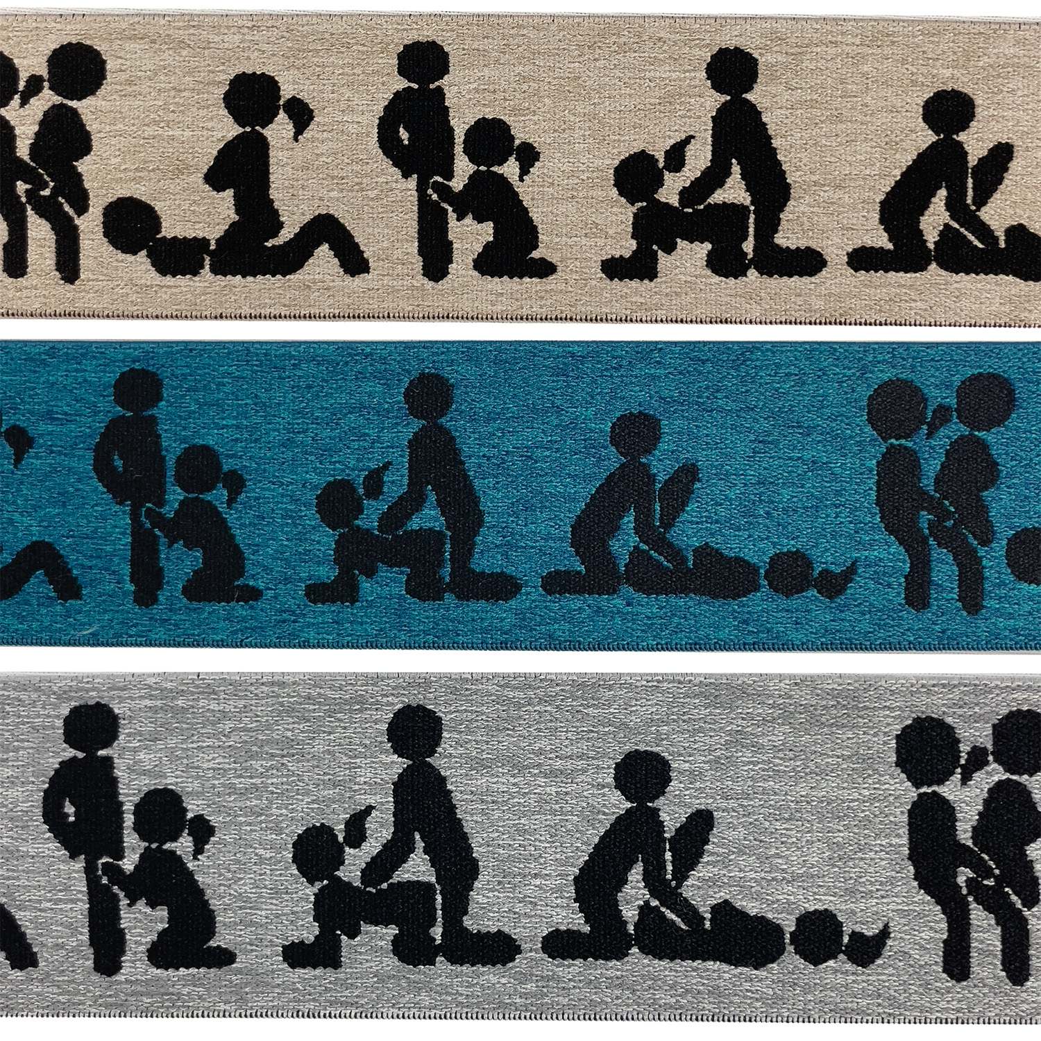 Tämä elastinen nauha ei ole ujoihin ompeluprojekteihin - se on ehdottomasti monitulkintainen tässä! Silmiinpistävässä melange-lookissa nauhassa on röyhkeitä, mustia siluetteja erilaisissa, hyvin selkeissä asennoissa, ja se saa taatusti ihmiset hymyilemään ja puhumaan.