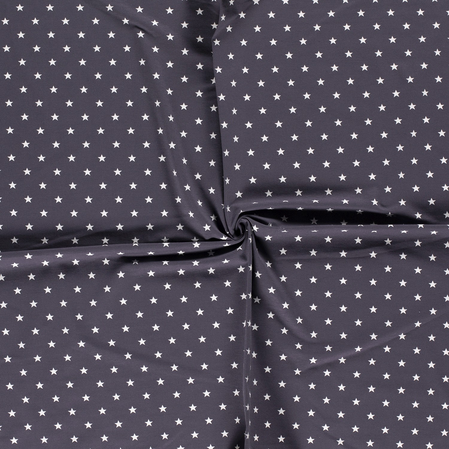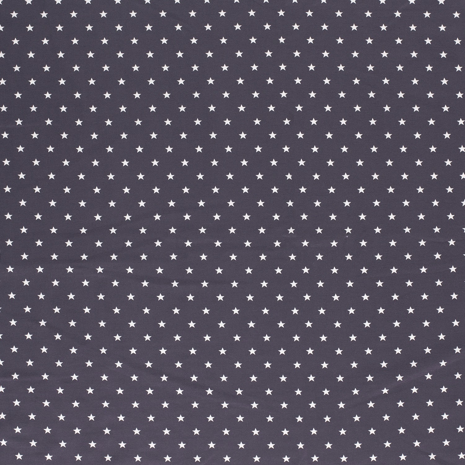 Perinteinen tähtitaivas ompeluprojekteihisi: syvän tummanharmaalla pohjalla loistavat pienet, tasaisesti jakautuneet tähdet raikkaassa valkoisessa – yksinkertaista, modernia ja ajattoman tyylikästä.