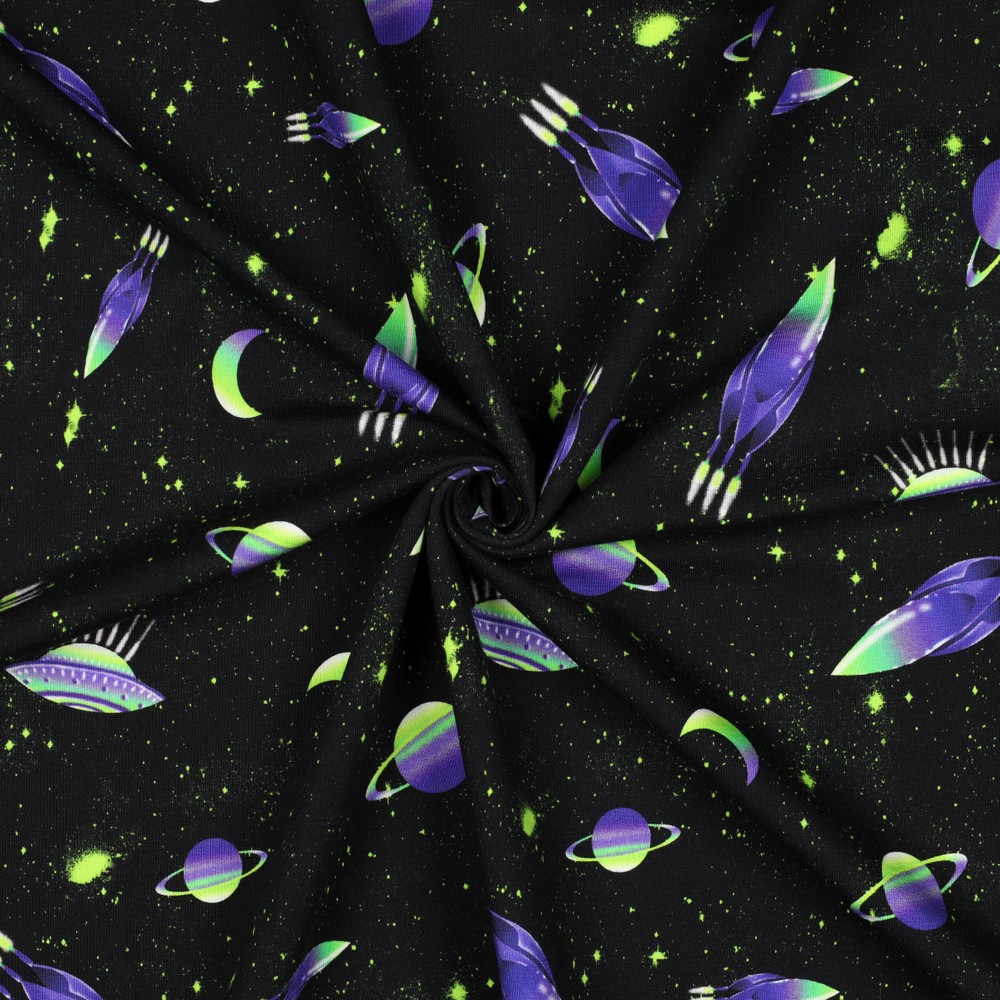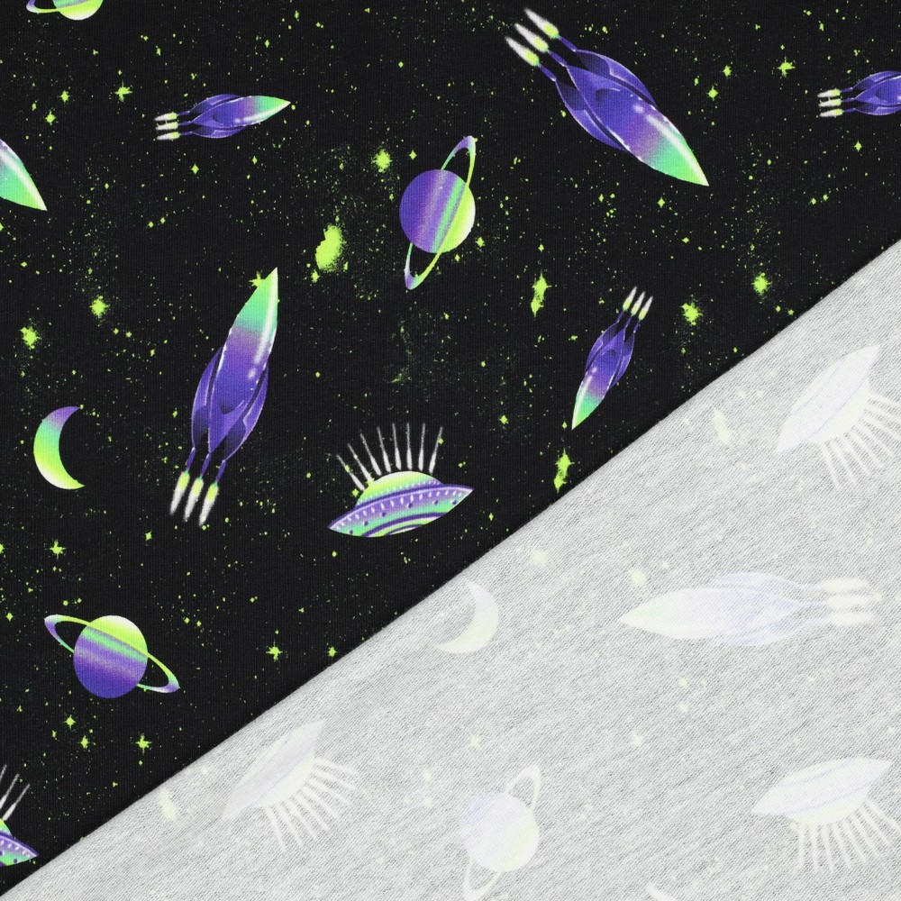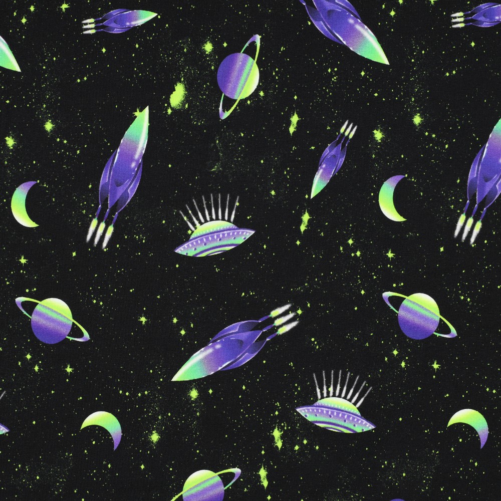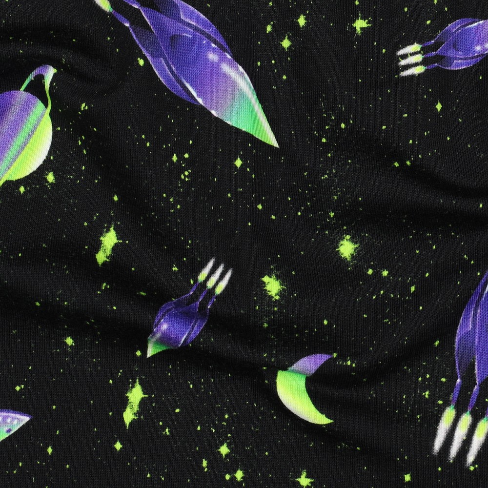 Kesä French Terry digitaalisella painatuksella raketeista ja ufosta mustalla