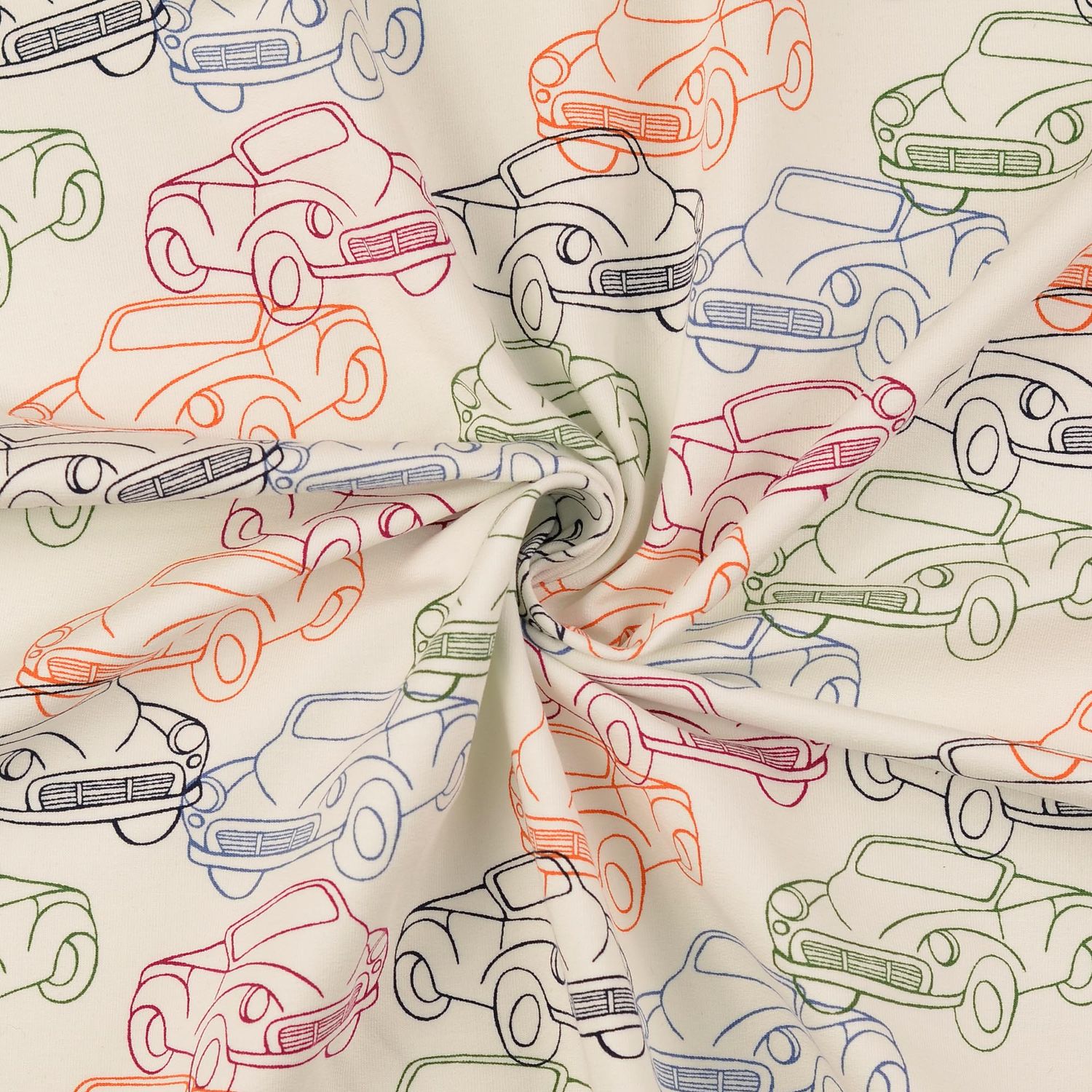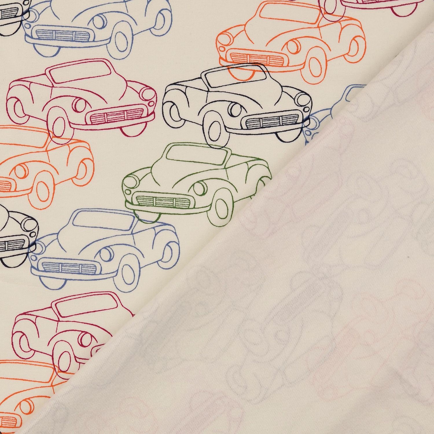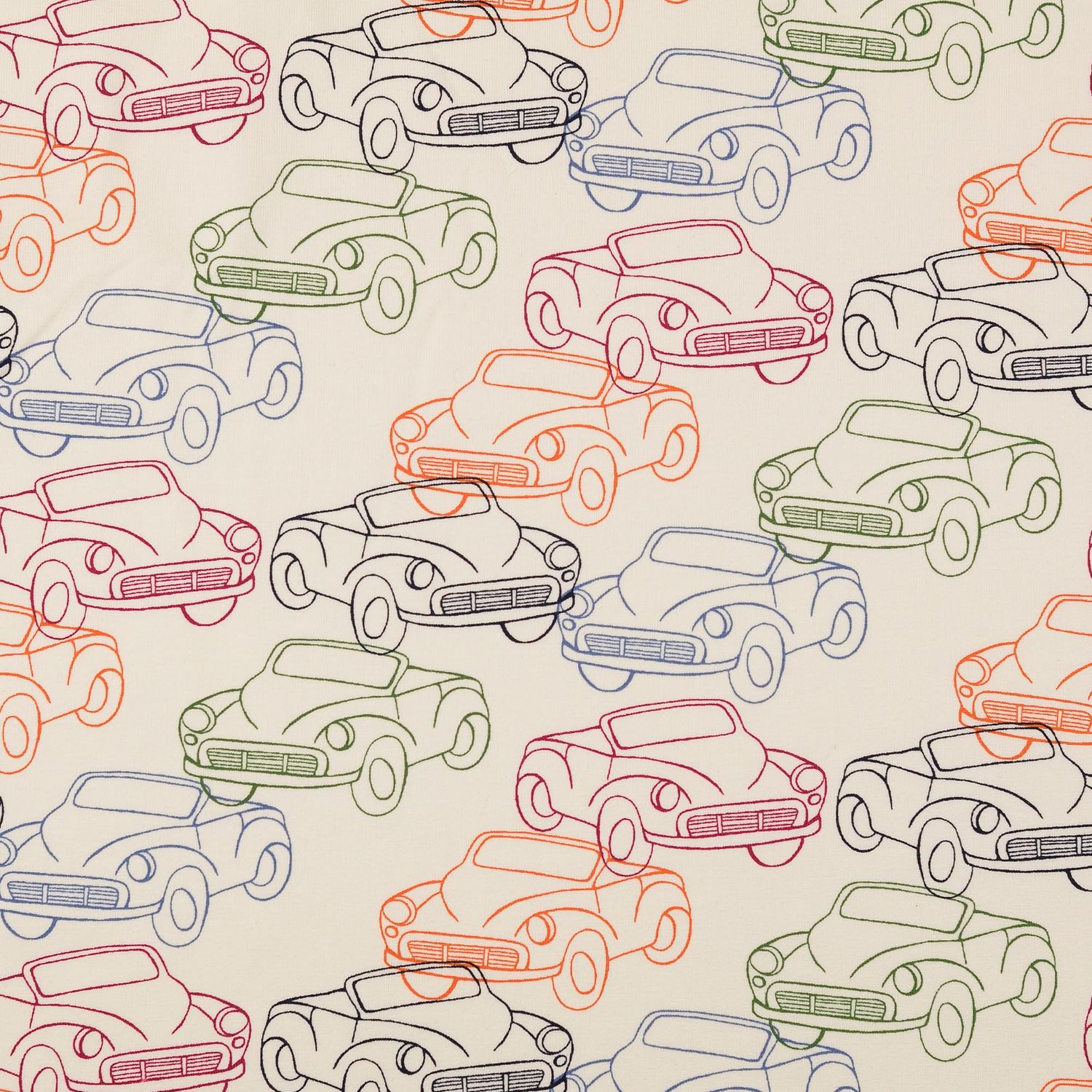 Kangas on kuin pieni road trip: lämpimän ecru-vaaleanvärinen tausta on täynnä iloisia, värikkäitä, erivärisiä avoautoja, joiden välissä on hienovaraisia, graafisia yksityiskohtia, jotka antavat suunnittelulle modernin ilmeen. Rakkaudella piirretyt autot näyttävät leikkisiltä, mutteivät liian lapsellisilta - täydellinen ratkaisu kaikenikäisille autofaneille.