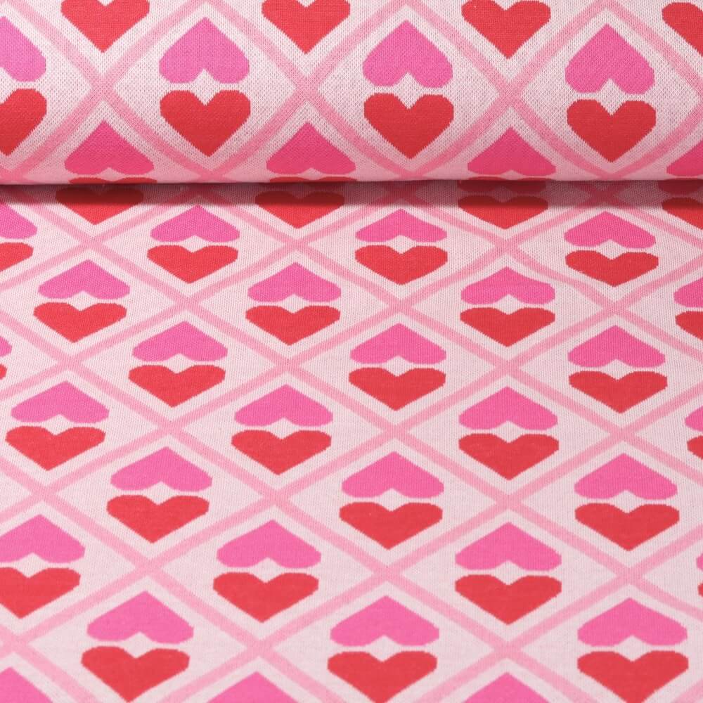 Orgaaninen jacquard jersey - Hamburger Liebe Hand on Heart ASS Beige Vaaleanpunainen