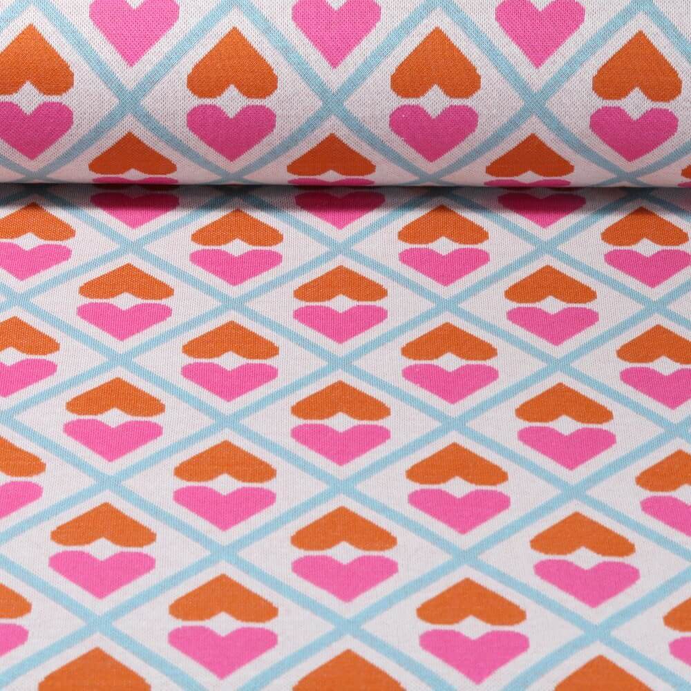 Orgaaninen jacquard jersey - Hamburger Liebe Hand on Heart ASS Beige Vaaleanpunainen