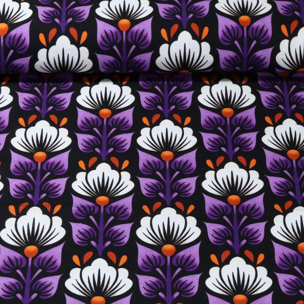Orgaaninen kangas - Digitaalinen tulostus Midnight Wild Flower Musta Valkoinen