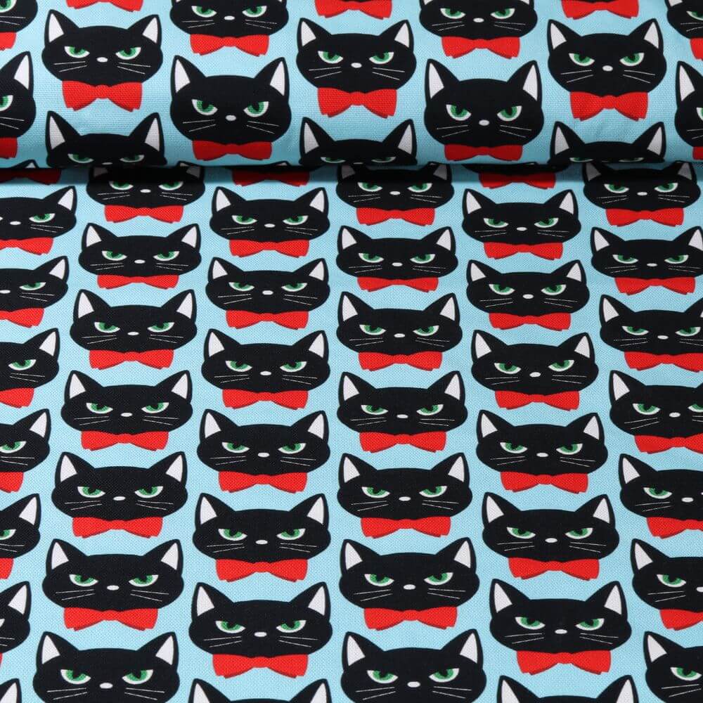 Laadukkaassa kankaassa on juuri sopiva määrä vakautta, jotta laukut, reput, tyynyt, astiat, istuintyynyt tai koriste-esineet pysyvät kunnossa. Samalla muotoilu on iloinen, rohkea ja hieman glamourinen - täydellinen kaikille, jotka rakastavat kissoja ja huomiota herättäviä printtejä.