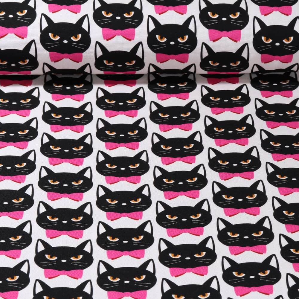 Kangas, johon voi rakastua - leikkisä, moderni ja ripauksella glamouria: tyylikkäät kissanpäitä hennoissa pastelli- ja trendiväreissä hääräävät kirkkaan valkoisella pohjalla. Hento vaaleanpunainen, minttu, vaaleansininen ja kirkkaan vaaleanpunaiset ja mustat aksentit antavat kuosille iloisen mutta hyvin modernin ilmeen. Hienot yksityiskohdat, kuten ripset, viikset, pienet tähdet ja graafiset elementit luovat tyypillisen "bling bling" -ilmeen.