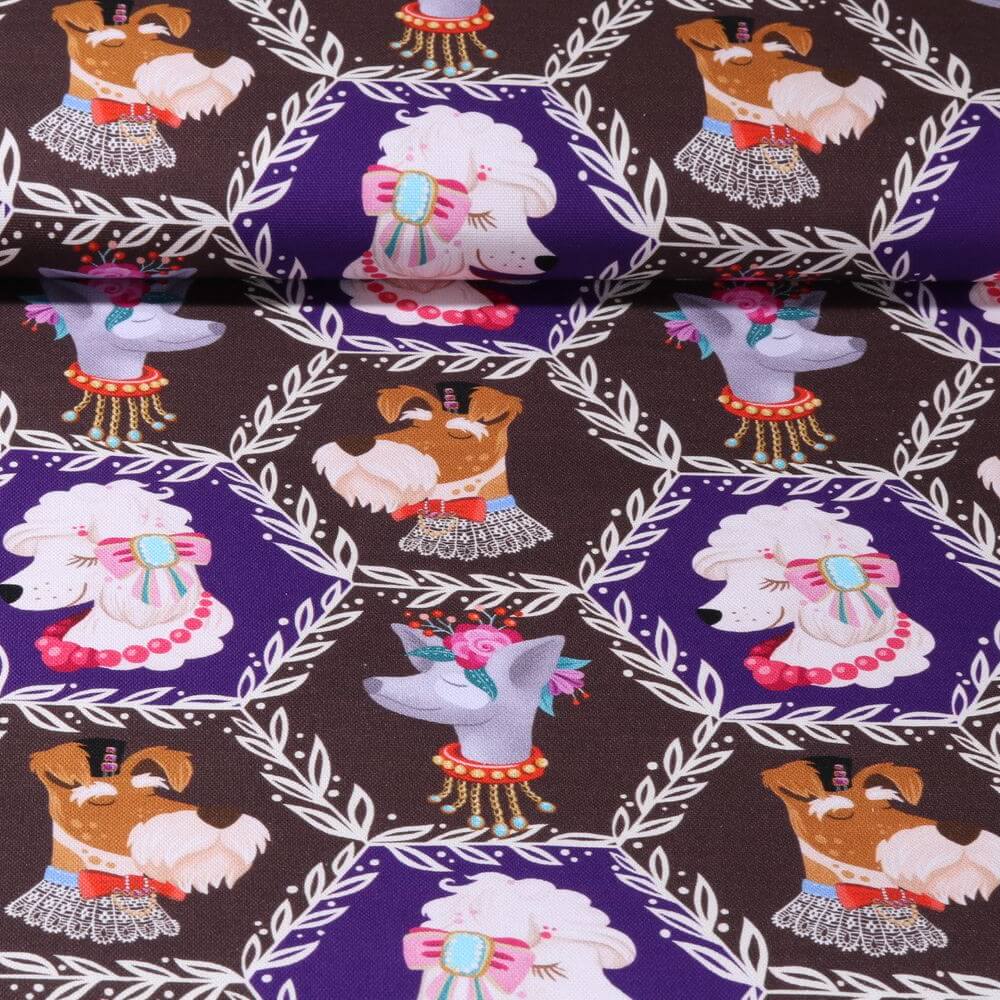Kangas, johon rakastua - tämä kangas tuo iloisen koiran taikaa ompeluprojekteihisi! Rakkaudella piirretyt koirat eri asennoissa häärivät lämpimällä ruskealla pohjalla, jota ympäröivät pienet tähdet, pisteet ja leikkisät yksityiskohdat, jotka antavat kankaalle sen erityisen viehätyksen.
