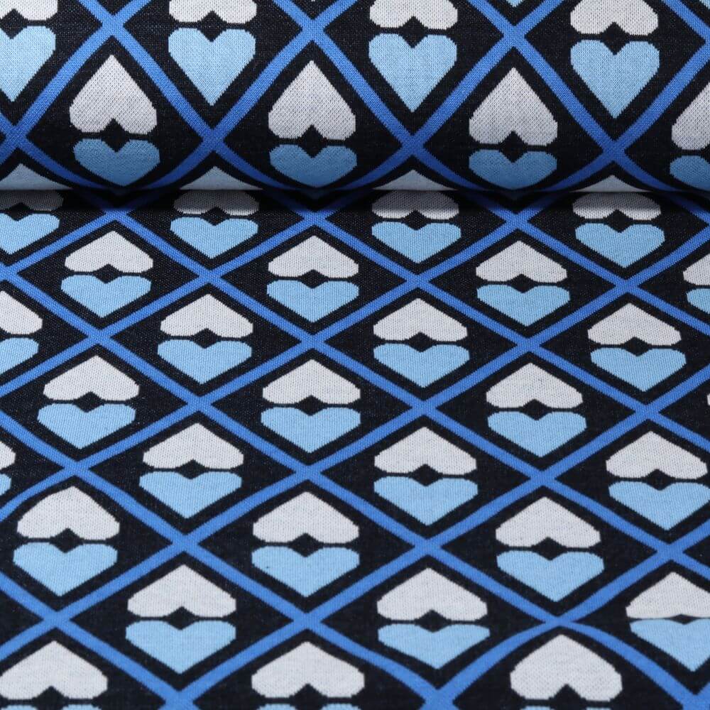 Organic Jacquard Jersey - Hamburger Liebe Hand on Heart ASS Musta Sininen
