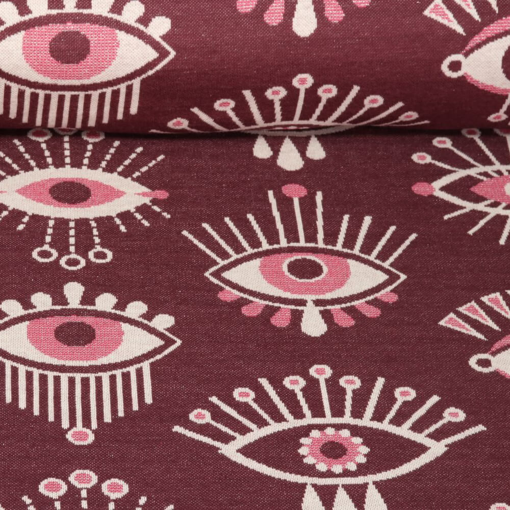 Organic Jacquard Jersey - Hamburger Liebe Magical Shimmer Eye of Enlightment Bordeaux