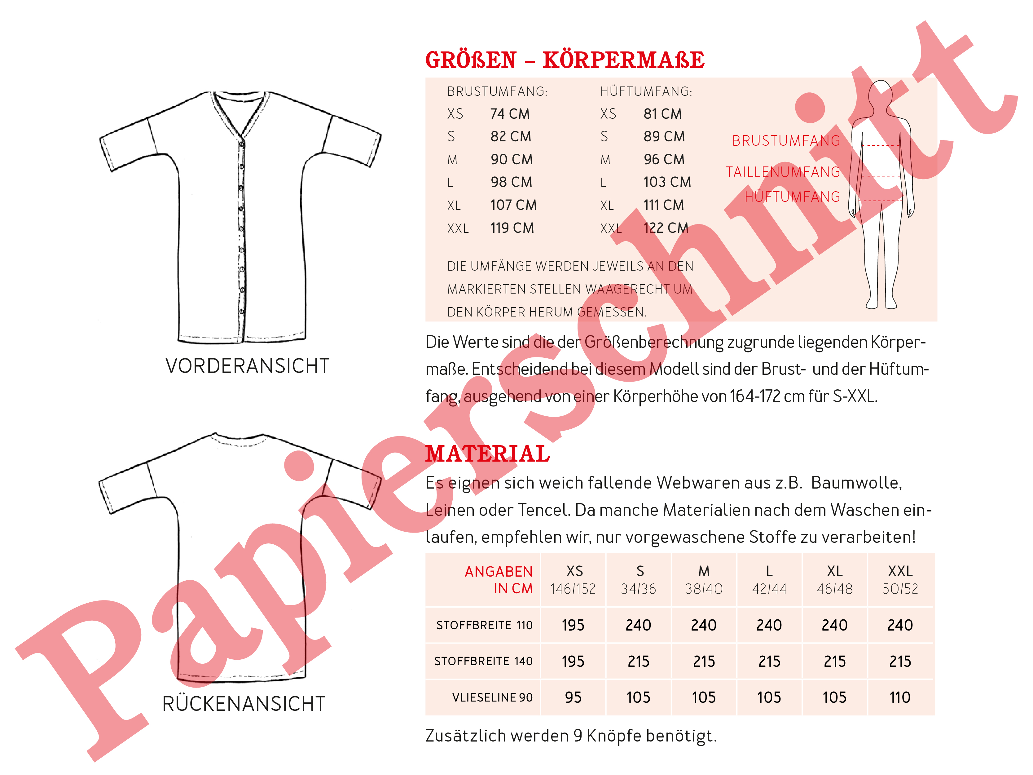 FRAU EDDA Suoralinjainen paitamekko, jossa nappilista ja taskut | Studio Schnittreif | XS–XXL