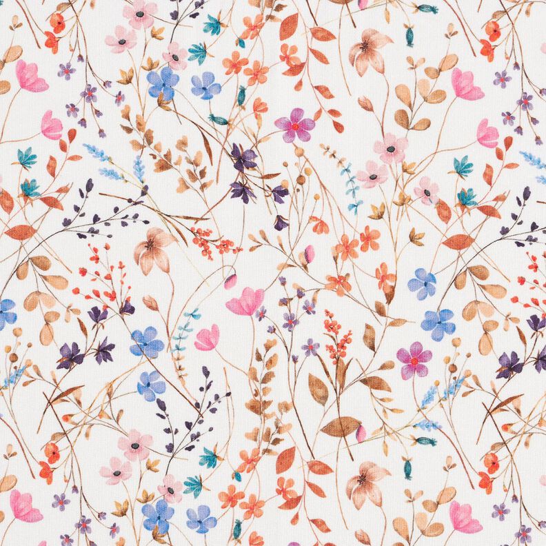 GOTS French Terry Kesäcollege Kuivattujen kukkien meri Digitaalipainatus – norsunluu