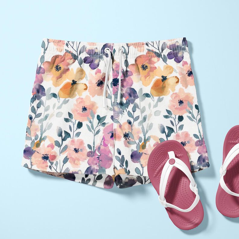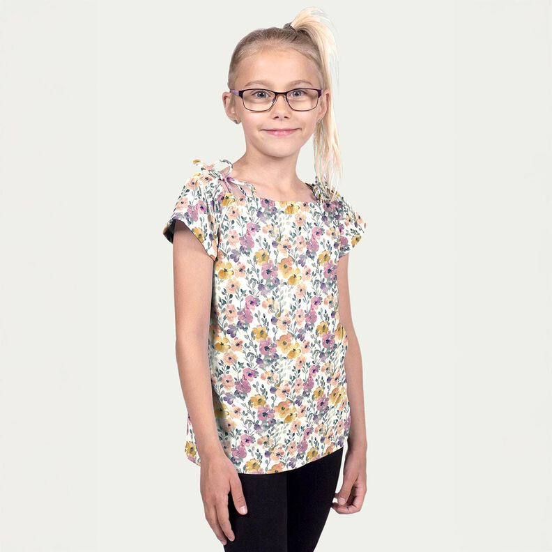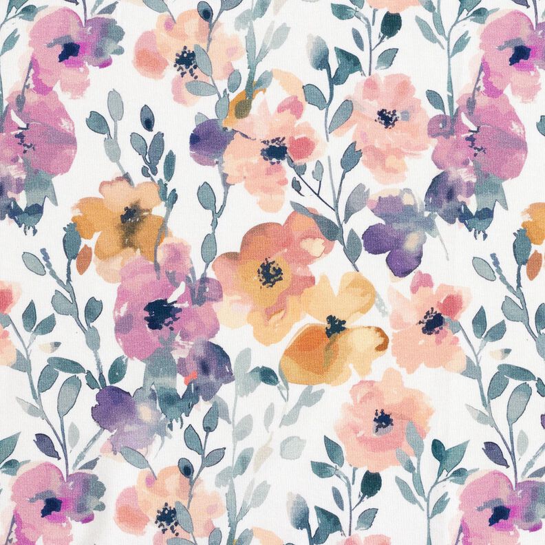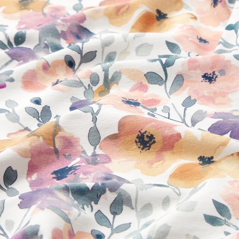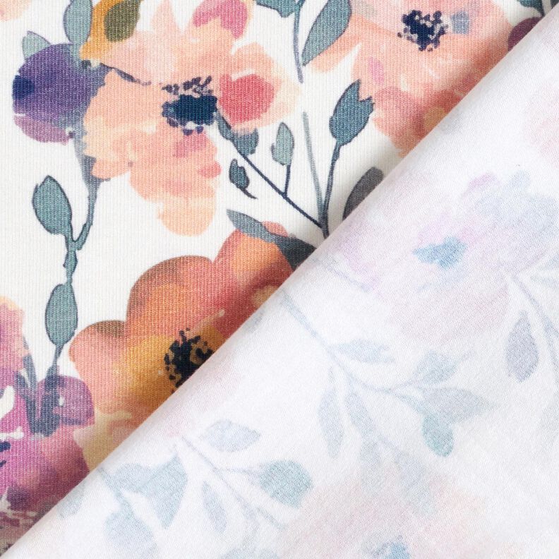 GOTS Puuvillajersey Akvarellikukkaketo Digitaalipainatus – norsunluu