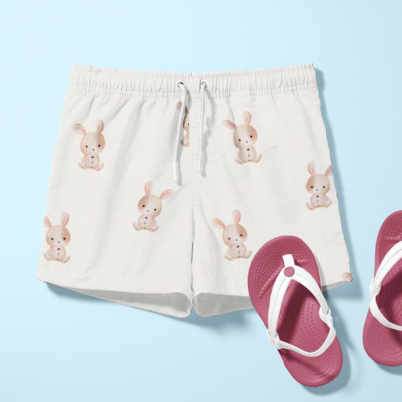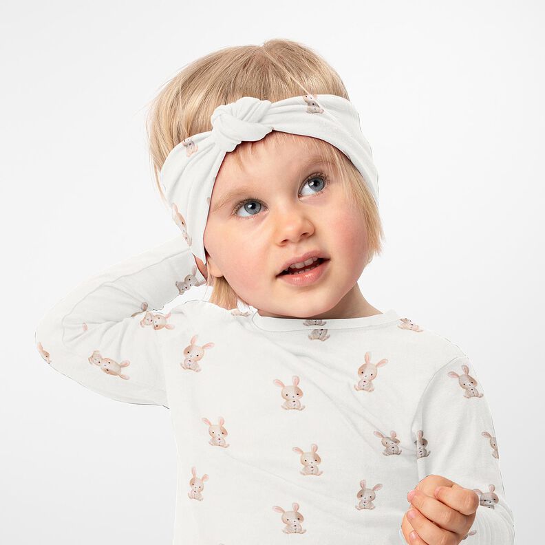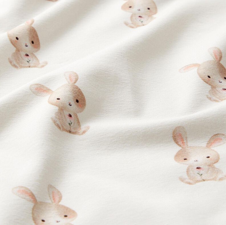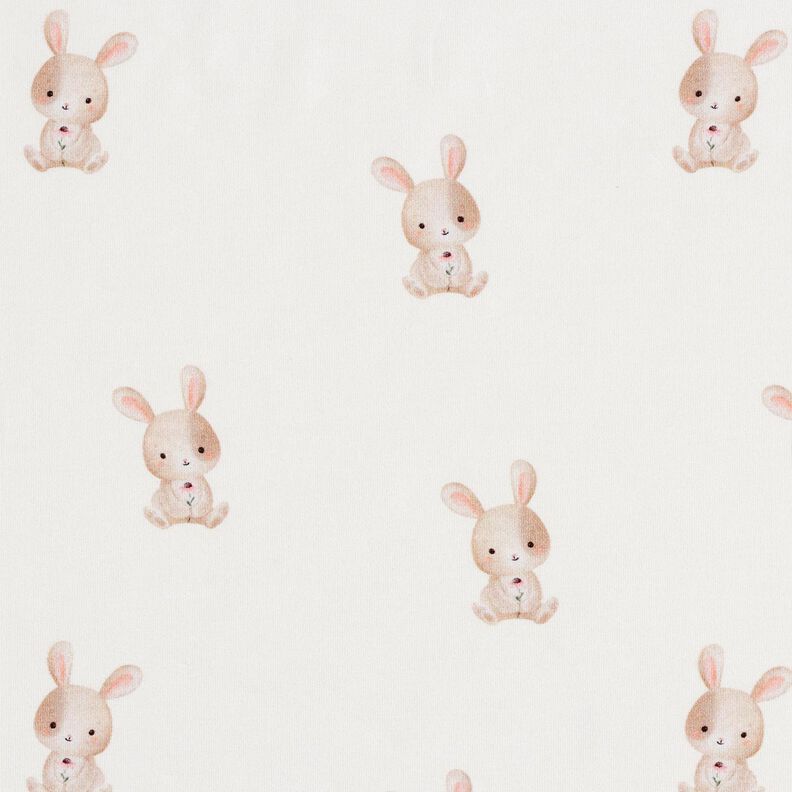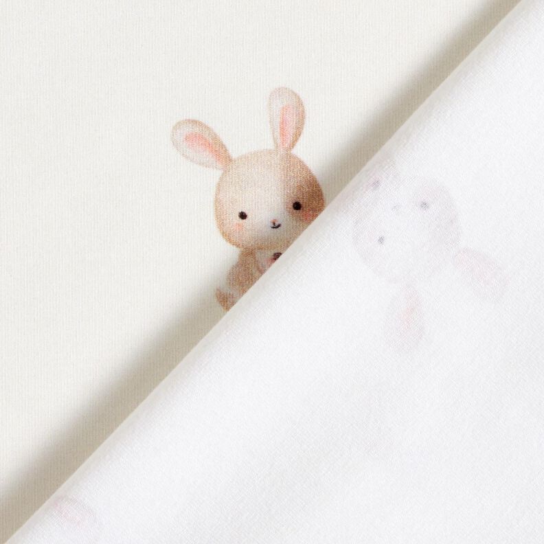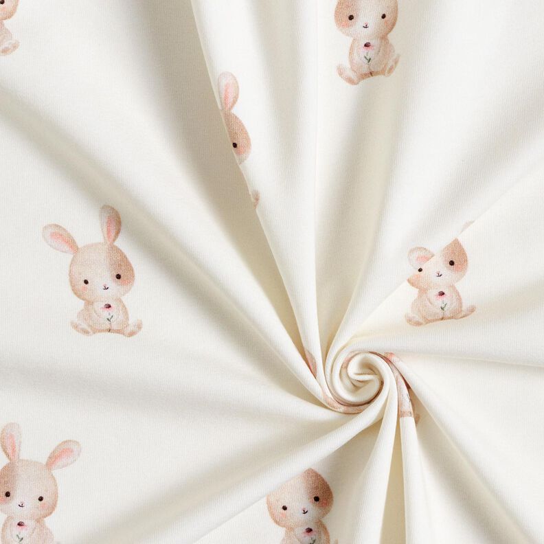 GOTS Puuvillajersey Jänis ja kukka Digitaalipainatus – norsunluu
