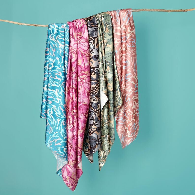 Kreppisatiini Abstraktit terälehdet – vanharoosa/kerma
