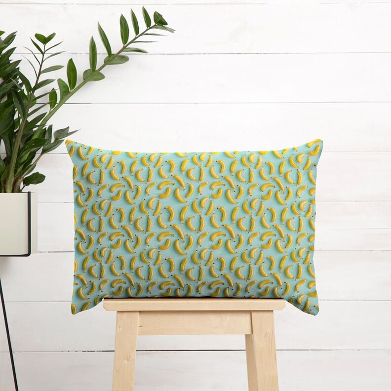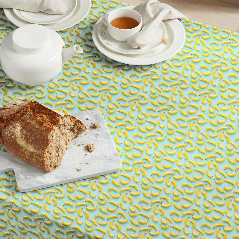 Puuvillakangas Popliini Banaanit – eukalyptus/auringonkeltainen