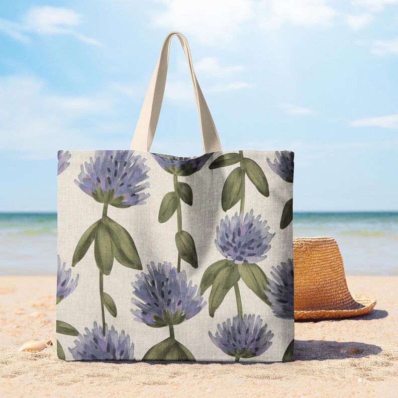 Sisustuskangas Puolipanama Kukkiva apila – siniharmaa/vaalea ruskeanharmaa