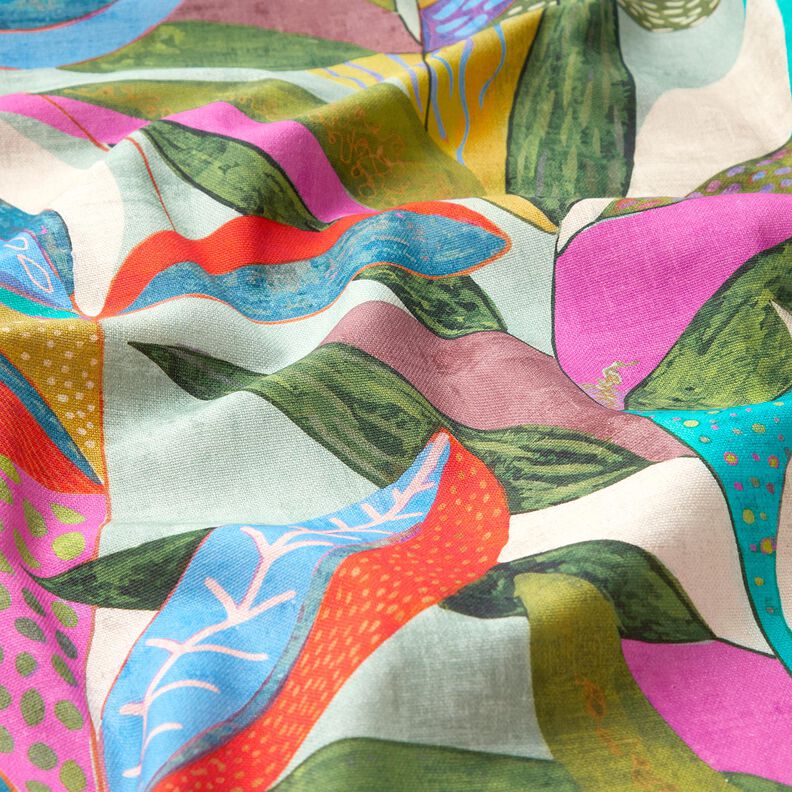 Sisustuskangas Puolipanama Trooppiset lehdet – oranssi/tummanvihreä