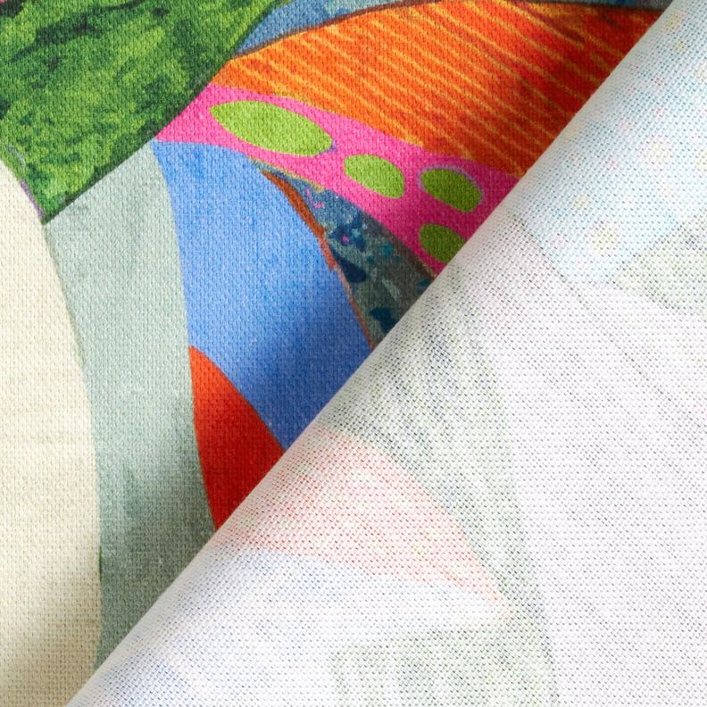 Tämä kauniisti painettu puolipanama tuntuu miellyttävän sileältä. Palttinainen kangas on erityisen kestävää ja materiaalinsa johdosta erittäin helppohoitoista .