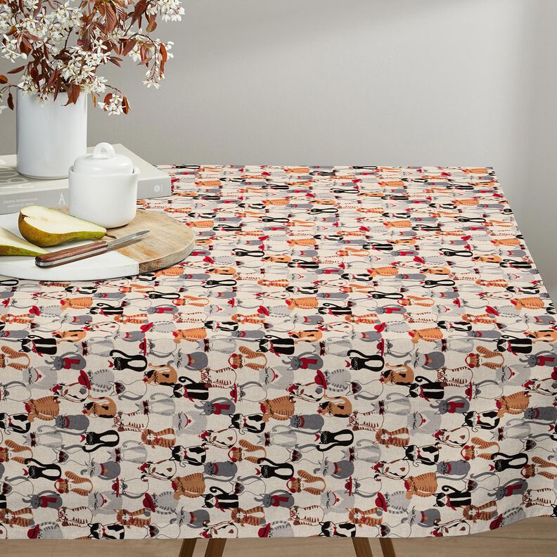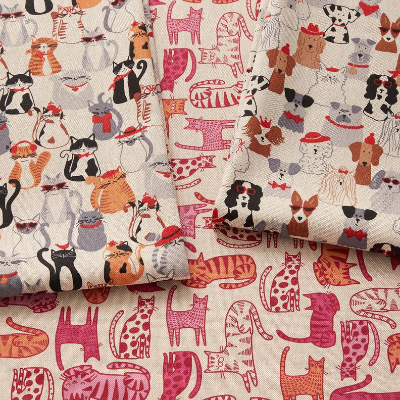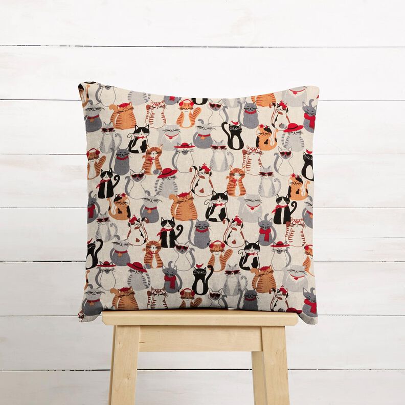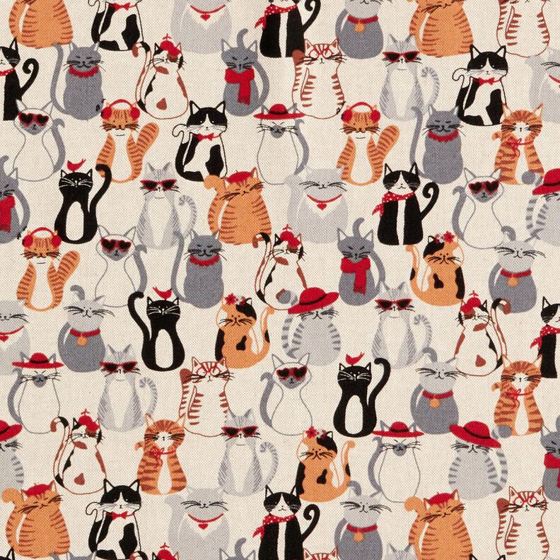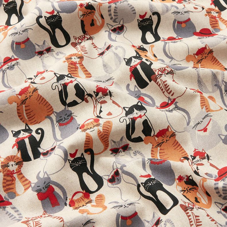 Sisustuskangas Puolipanama Tyylikkäät kissat – luonnonvärinen/harmaa