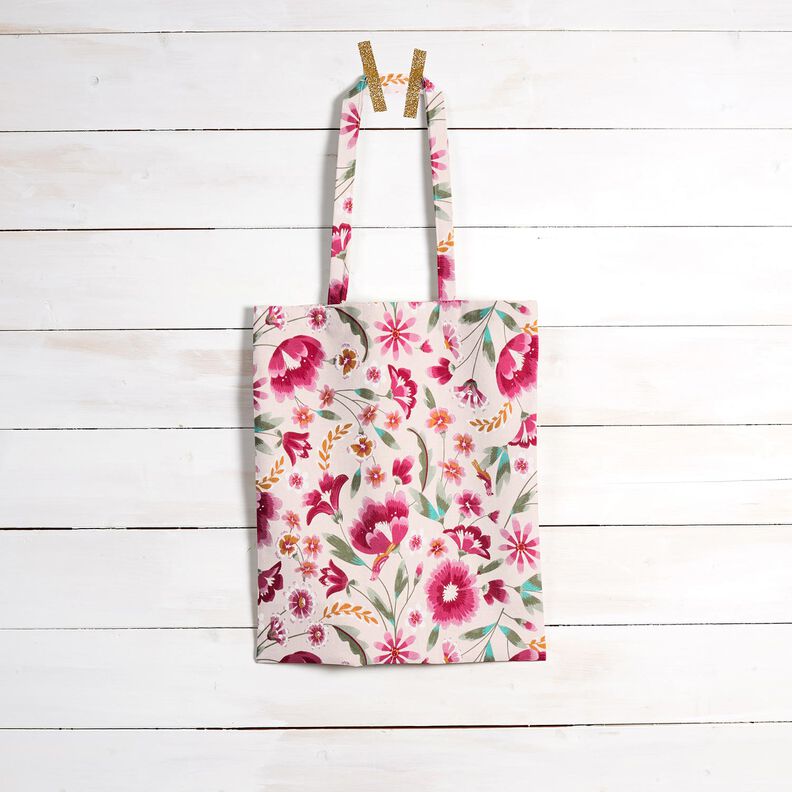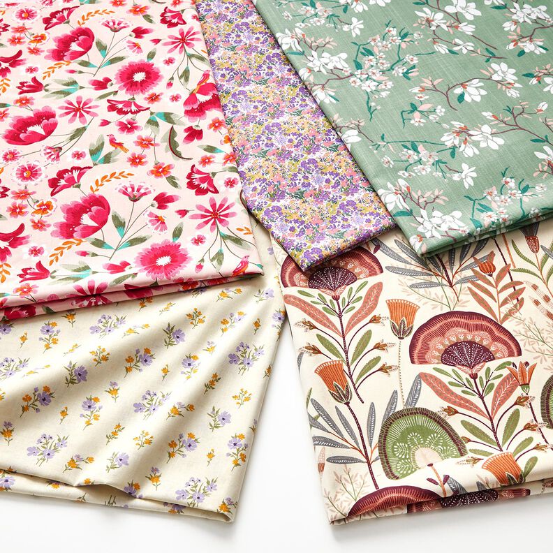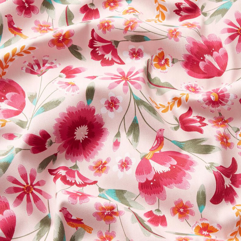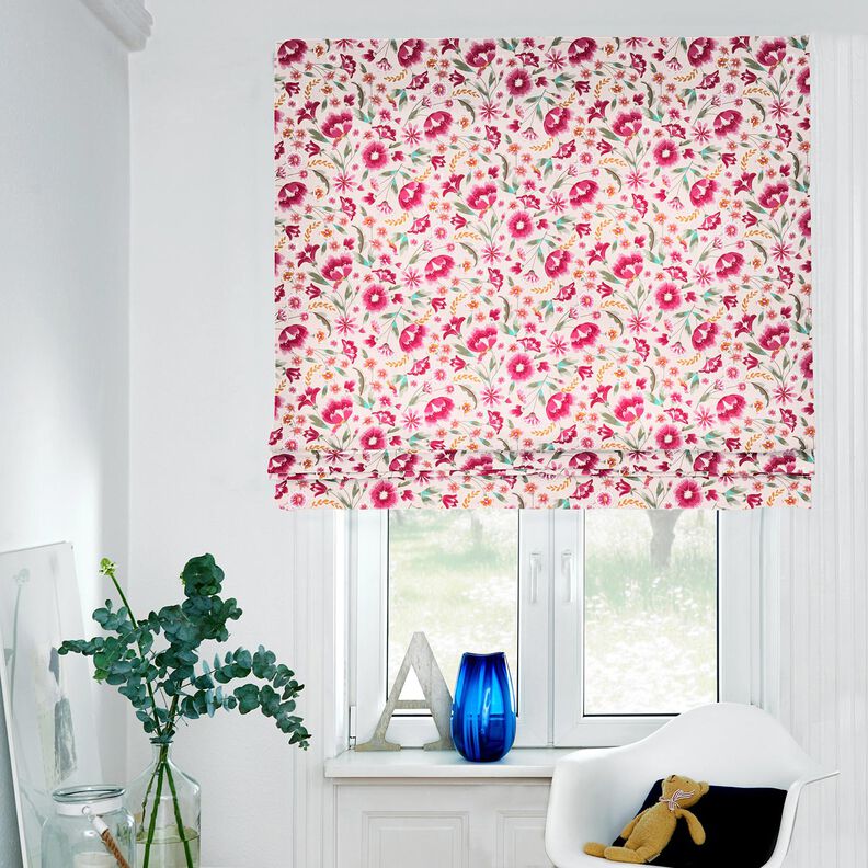 Sisustuskangas Puuvillatoimikas Keväiset kukat – ruusunpunainen/vadelma