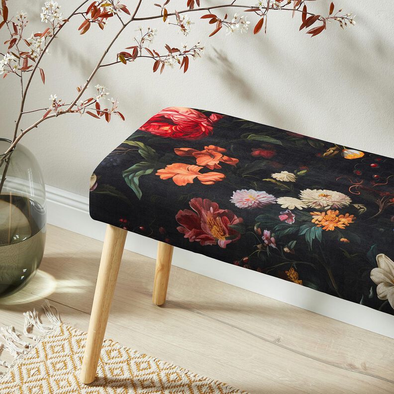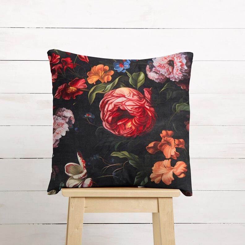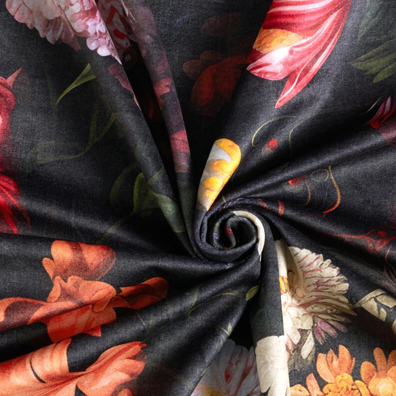 Sisustussametti Romanttiset kukat – antrasiitti/ruusunpunainen