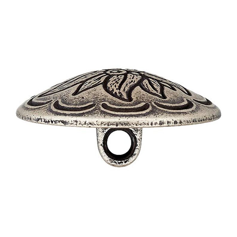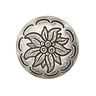 Laadukas metallinen kantanappi, jossa kukka-aihe.