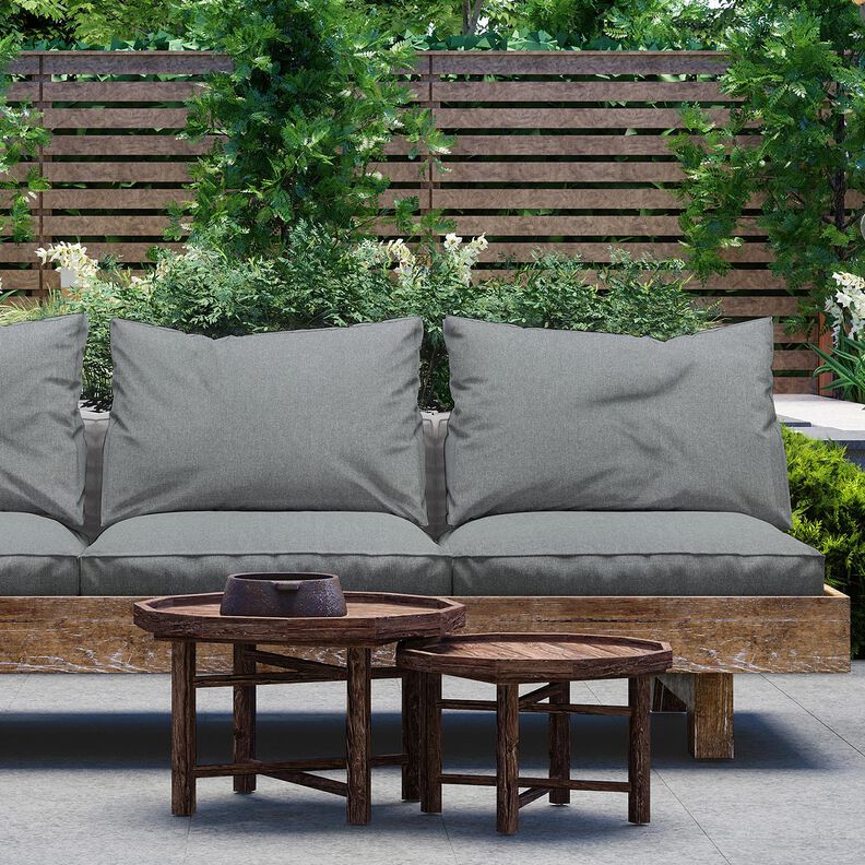 Tämä ulkokangas sopii ihanteellisesti alustaksi, tyynyihin ja pehmusteisiin puutarhan oleskelualueella.