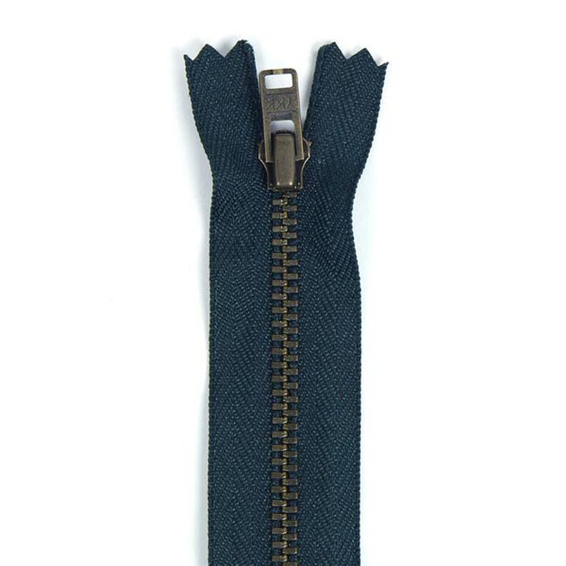 Metallinen vetoketju hampailla (antiikki, 3mm) housuihin, hameisiin ja mekkoihin. Vetoketjun osia ei voida irrottaa alhaalta. Korkea laatu YKK.