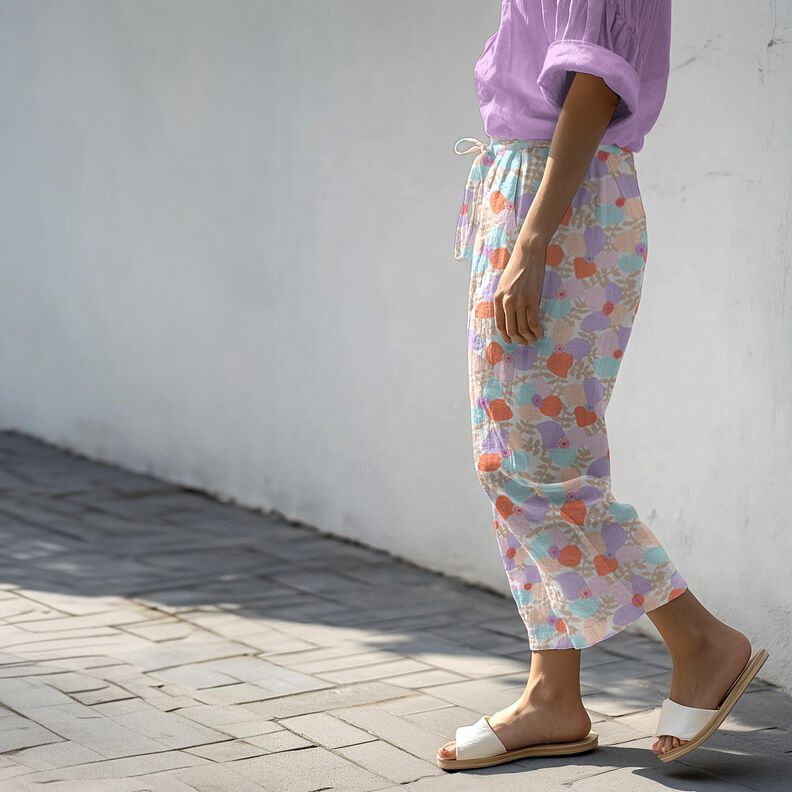 Viskoosi-pellavasekoite Lema Poppies | Nerida Hansen – villanvalkoinen/eukalyptus