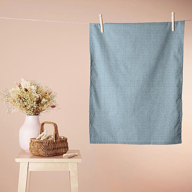 - OMPELUPROJEKTISI: Erinomaisen kosteuden imeytymisen ansiosta vohvelipikee sopii erittäin hyvin astia- ja käsipyyhkeisiin, kylpytakkeihin sekä vauvan tarvikkeisiin. Ompeluun kannattaa käyttää neulan vahvuutta 80-100 ja 2,5-3 mm:n ommelpituutta.