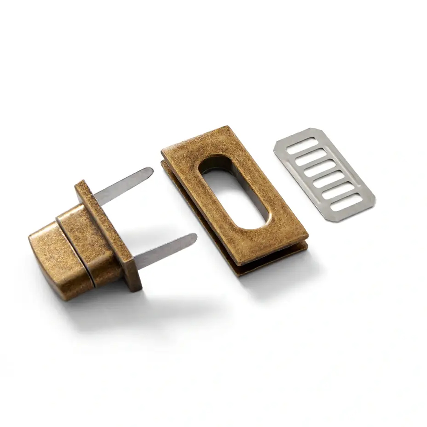 Prymin kierrekiinnittimellä, joka on valmistettu tyylikkäästä antiikkimessingistä, saat laukut, reput, takit ja monet muut ompeluprojektit tyylikkään, hieman nostalgisen näköisiksi hetkessä. Harjattu pinta luo mattapintaisen, hieman kuvioidun ulkonäön - täydellinen kaikille, jotka pitävät huomaamattomasta mutta laadukkaasta ulkonäöstä.