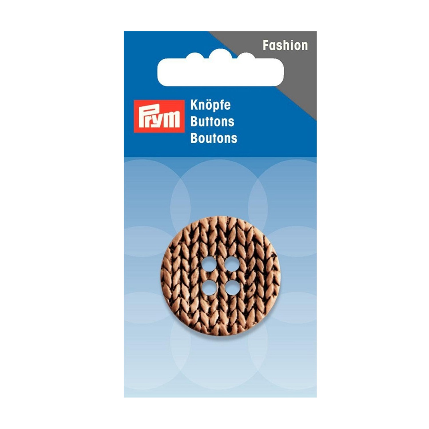 Tämä lämpimän beigen värinen koristeellinen PRYM-nappi näyttää siltä, että se on neulottu rakkaudella käsin. Hieno, punottu rakenne muistuttaa pehmeää neulosta, ja se antaa takille, neuletakille, takille, neuleprojekteille tai asusteille kodikkaan, käsintehtyjä piirteitä.