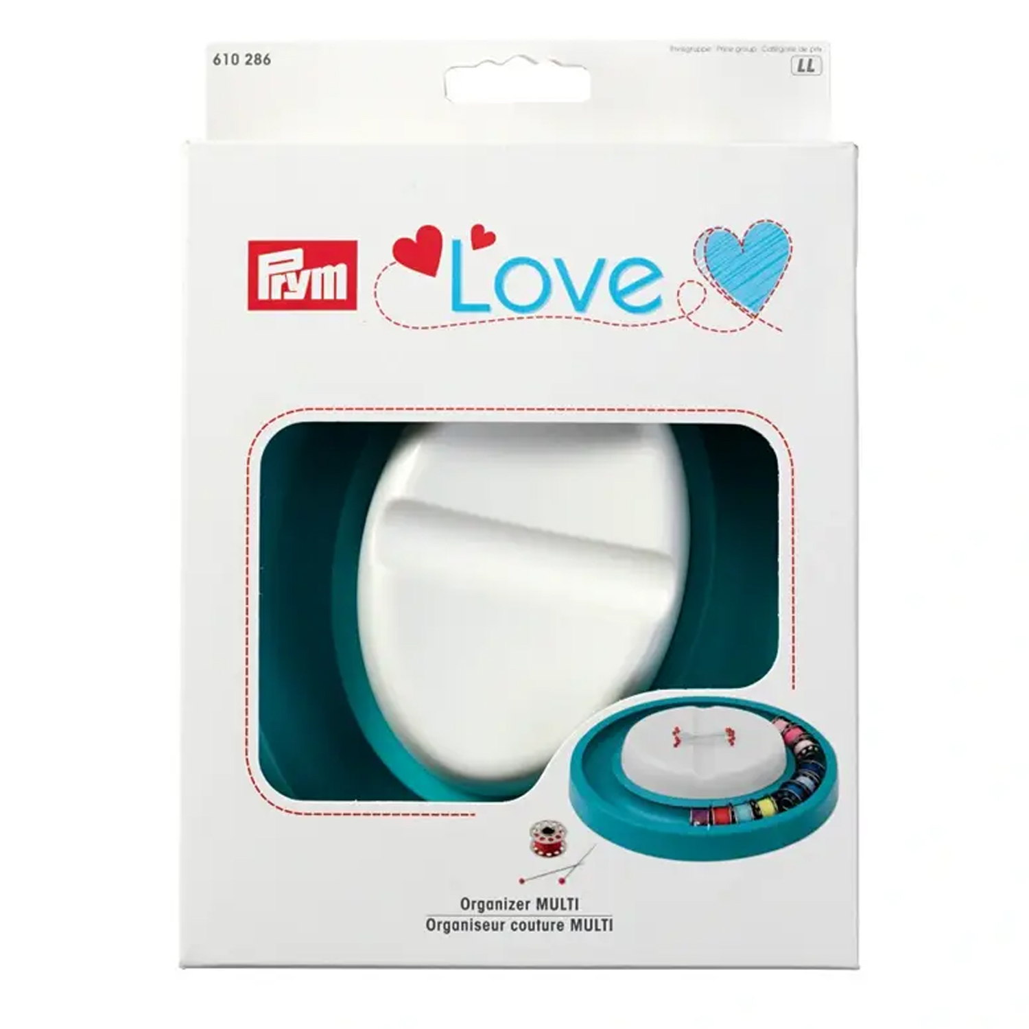Prym LOVE Organiser MULTI:n avulla voit tuoda tyylikkään järjestyksen ompelualueellesi. Raikas turkoosi väri yhdistettynä hillittyyn harmaaseen näyttää modernilta ja ystävälliseltä - todellinen katseenvangitsija millä tahansa ompelupöydällä.