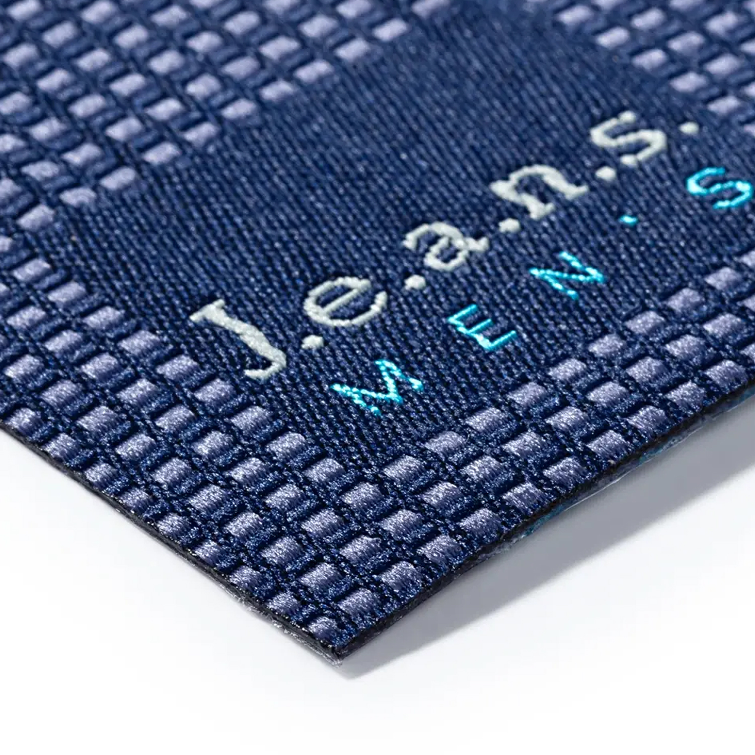Etiketti on klassisen, hieman huuhtoutuneen farkkusinisen värinen, ja se muistuttaa visuaalisesti tyypillisiä merkkitarroja vyötärönauhassa. Hienovaraiset kontrastiompeleet ja kuvioitu pinta korostavat rentoa denim-luonnetta - sopii erinomaisesti housujen, takkien, farkkupaitojen, reppujen tai laukkujen korostamiseen.