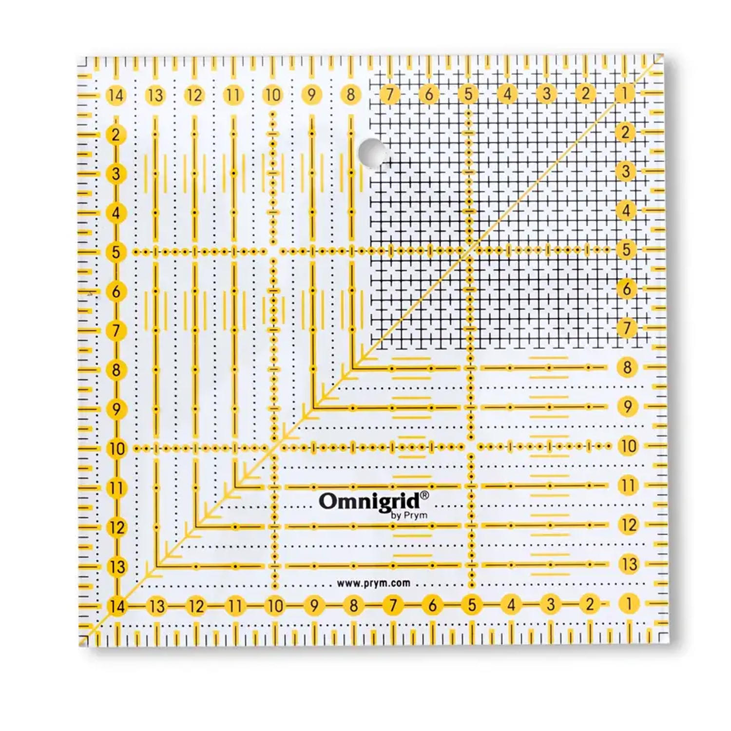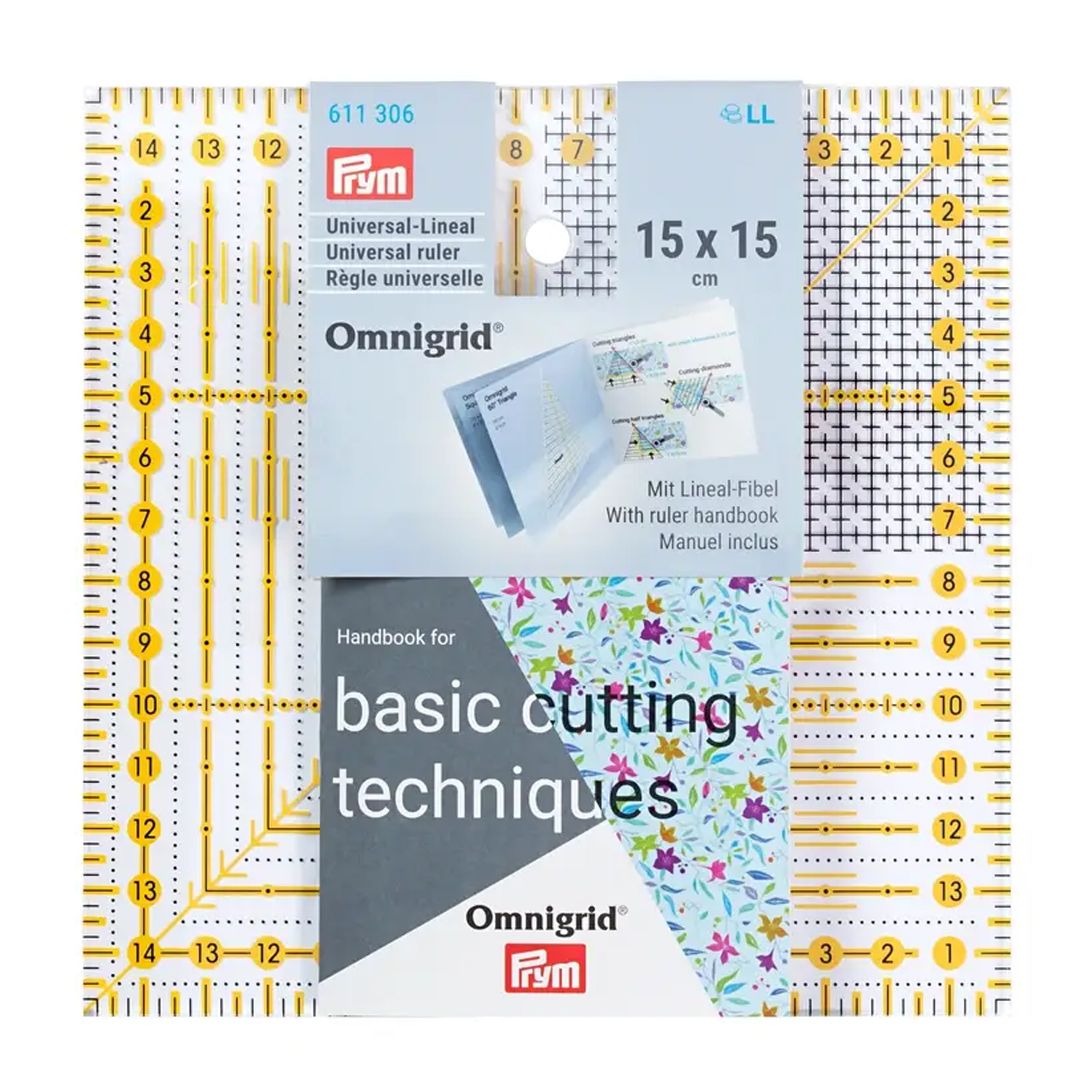 Tarkka leikkaaminen on lastenleikkiä Prym-yleisviivaimella. Pienikokoinen 15 x 15 cm:n neliö on ihanteellinen tilkkutöihin, tilkkutöihin, ompeluun ja kaikkiin luoviin leikkaustöihin - erityisesti pienempien kangaspalojen tai palasten leikkaamiseen.