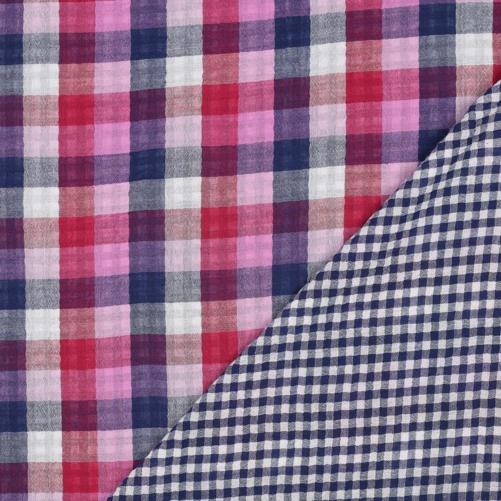 Puuvillamusliini - Double Gauze Kaksoiskangas ruudullinen sininen