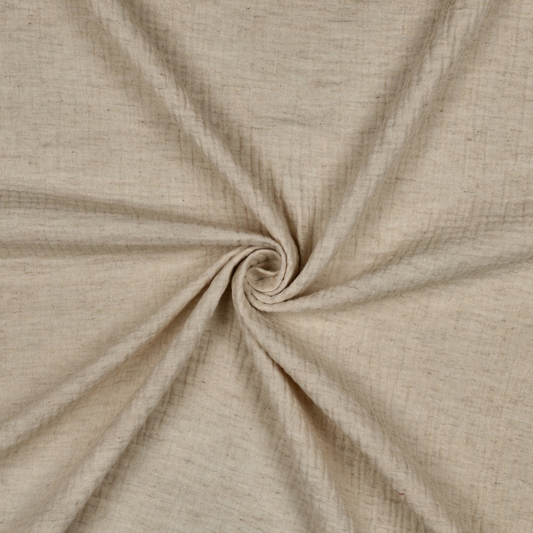Hellä kuin kesätuuli ja luonnollinen kuin rantakävely: tämä elegantin ecrun sävyinen musseli tuo keveyttä ompeluprojekteihisi. Hieno, kevyesti rypytetty rakenne antaa kankaalle ihanan pehmeän tuntuman ja rento-elegantin ilmeen – aivan kuin laadukas pellavakangas.