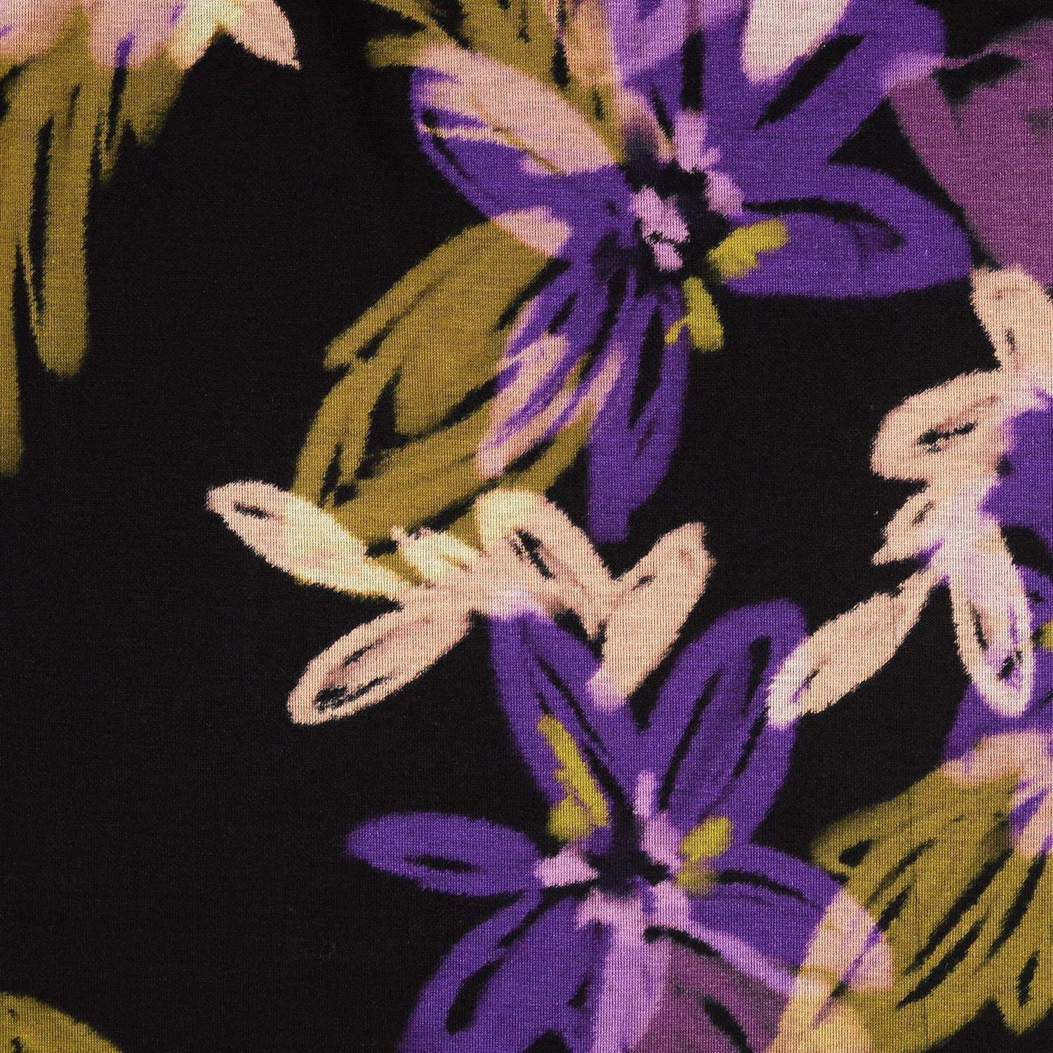 Romanit-jersey - digipainettu kukkakuvio violetti