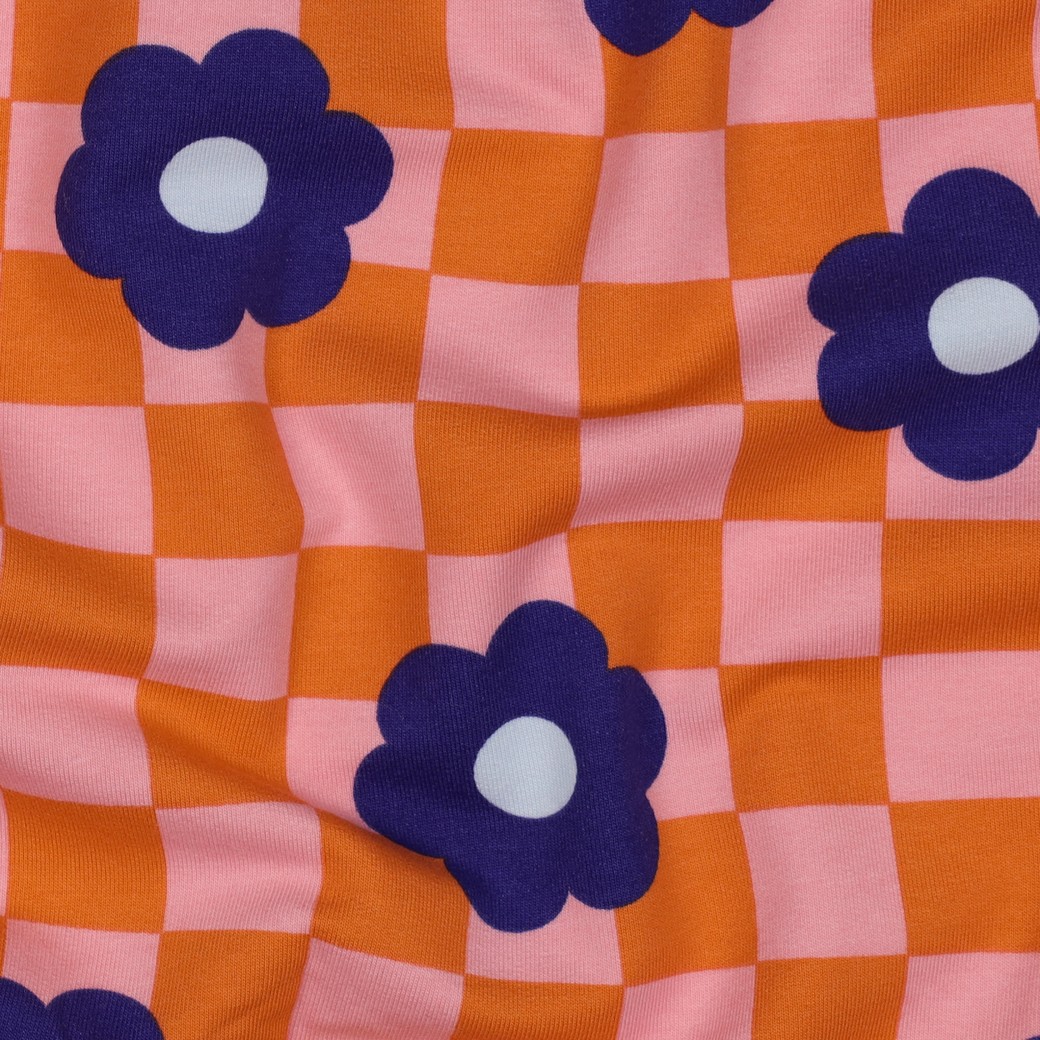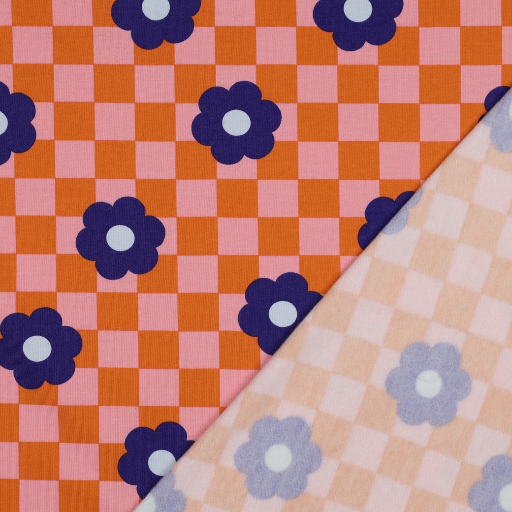 Harjattu sisäpinta tekee Softsweatista ihanan pehmeän ja miellyttävän – täydellinen mukaviin huppareihin, svetareihin, mekkoihin, verkkareihin tai lasten vaatteisiin. Olipa se sitten katseenvangitsija koko asussa tai erityinen yksityiskohta huppuissa, resoreissa ja taskuissa: Tämä design yhdistää leikkisät kukat klassiseen ruutuun ja tuo lämpöä, väriä ja hyvää mieltä vaatekaappiisi.