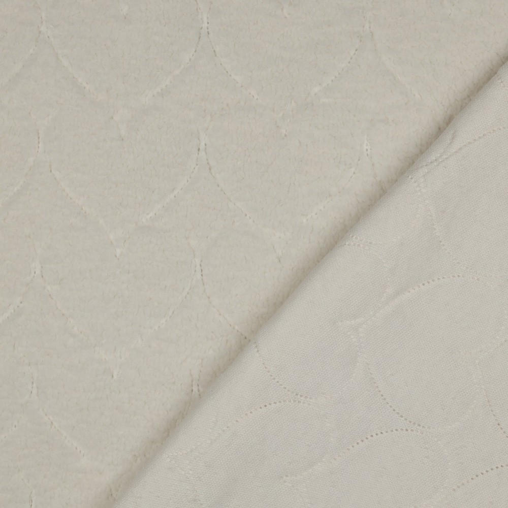 Viihtyisä, pehmeä ja helppo rakastua: Tämä hennon ecru-värinen nallefleece on kauttaaltaan koristeltu pienillä kohokuvioiduilla sydämillä, jotka voi tuntea, kun niitä silitellä. Pörröinen pinta tuo mieleen suosikkipehmolelun ja kutsuu heti halailemaan.