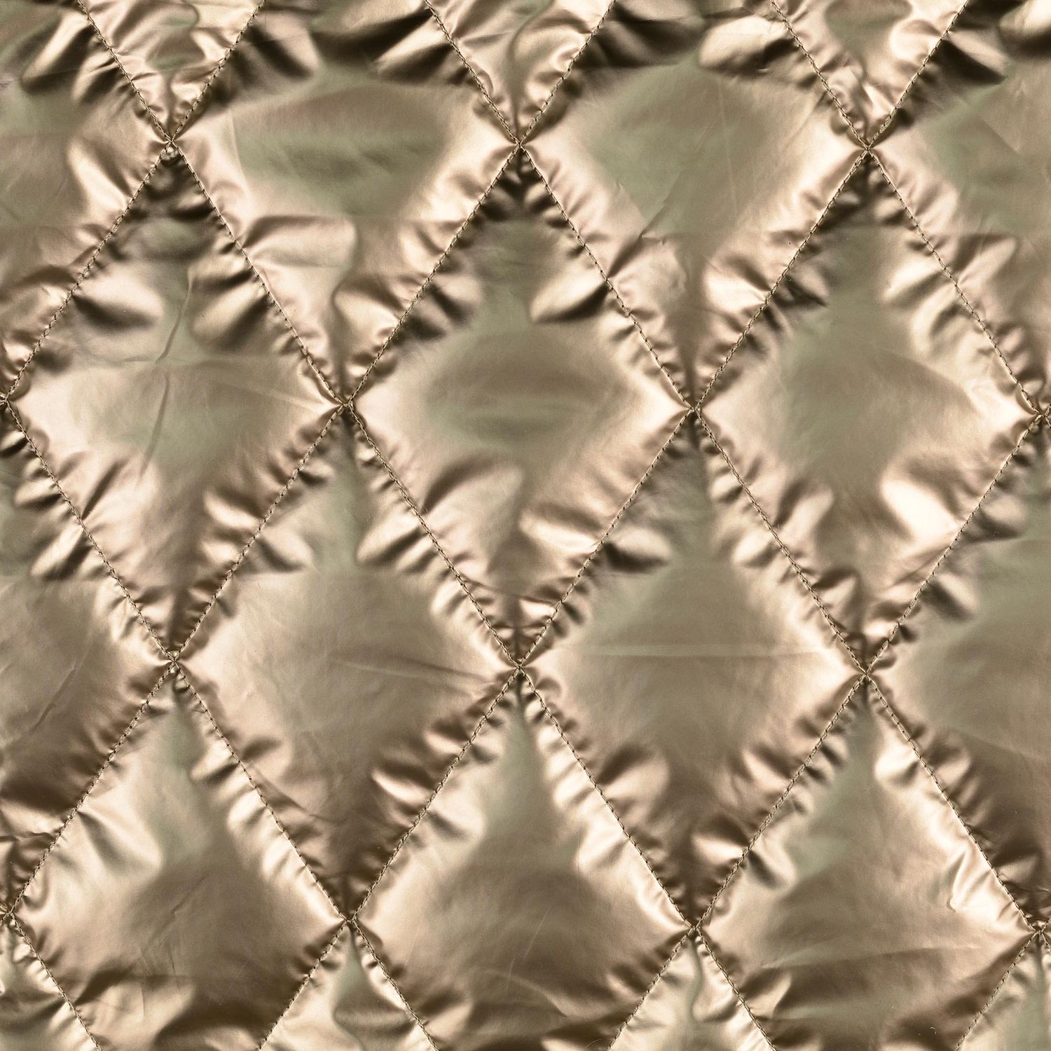 Tämä tyylikäs, pehmustettu takkikangas tuo ylellistä glamouria ompeluprojekteihisi. Hohtava metallikulta antaa kankaalle tyylikkään, hieman futuristisen ilmeen, joka heijastuu jännittävästi valosta riippuen. Hienot timanttitikkauksen saumat takaavat kauniin, tasaisen rakenteen ja korostavat kankaan laadukasta luonnetta.