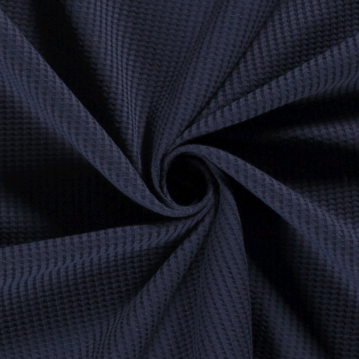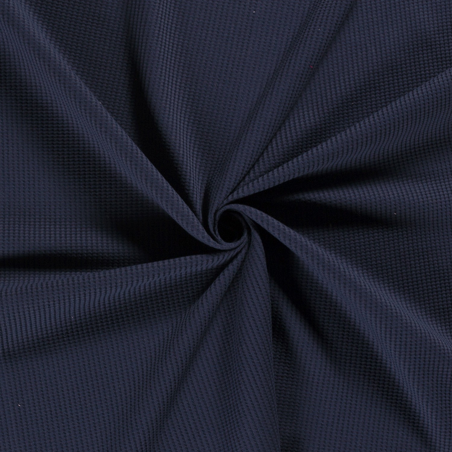 Täydellinen niille, jotka rakastavat yksinkertaista eleganssia ja arvostavat erityistä tuntumaa: tummansininen waffel jersey on helppo yhdistää ja siitä tulee nopeasti uusi suosikkikangas moniin ompeluprojekteihin.