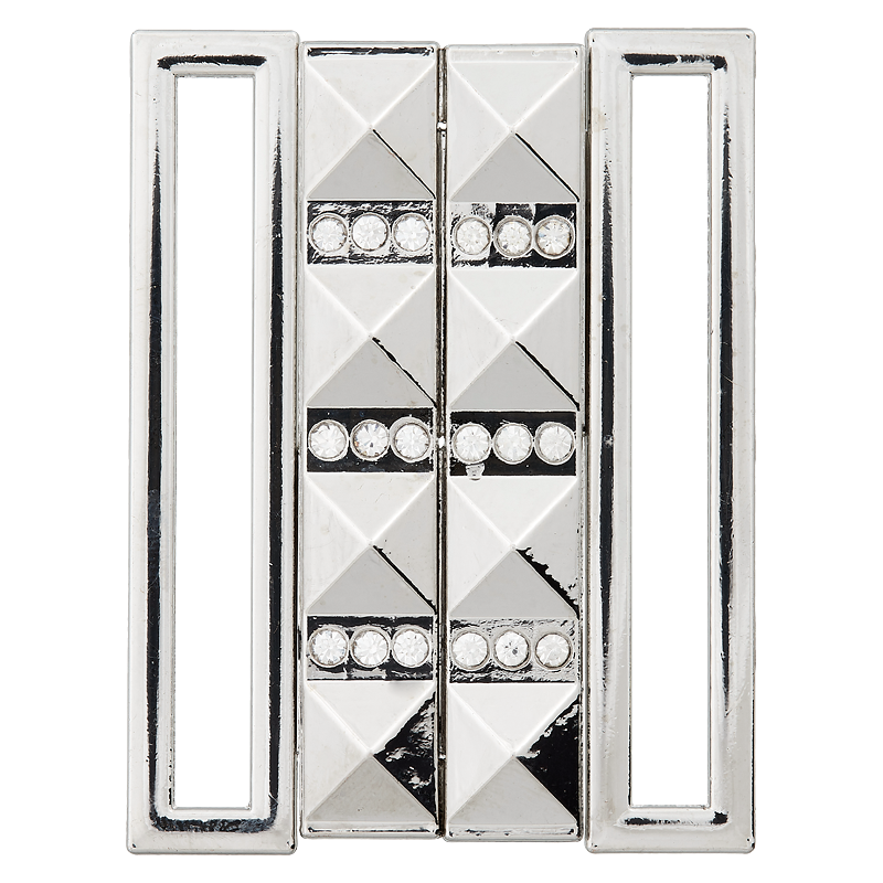 Tämä näyttävä vyönsolki tyylikkäästä hopeasta herättää kaikkien huomion. Muotoilulle on ominaista selkeät linjat ja siisti niitti-ilme, joka antaa vyöstäsi heti modernin, hieman rock-henkisen luonteen.