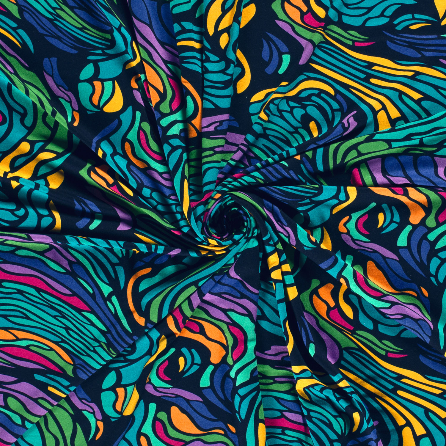 Viskoosijersey - Abstrakti Navy Monivärinen