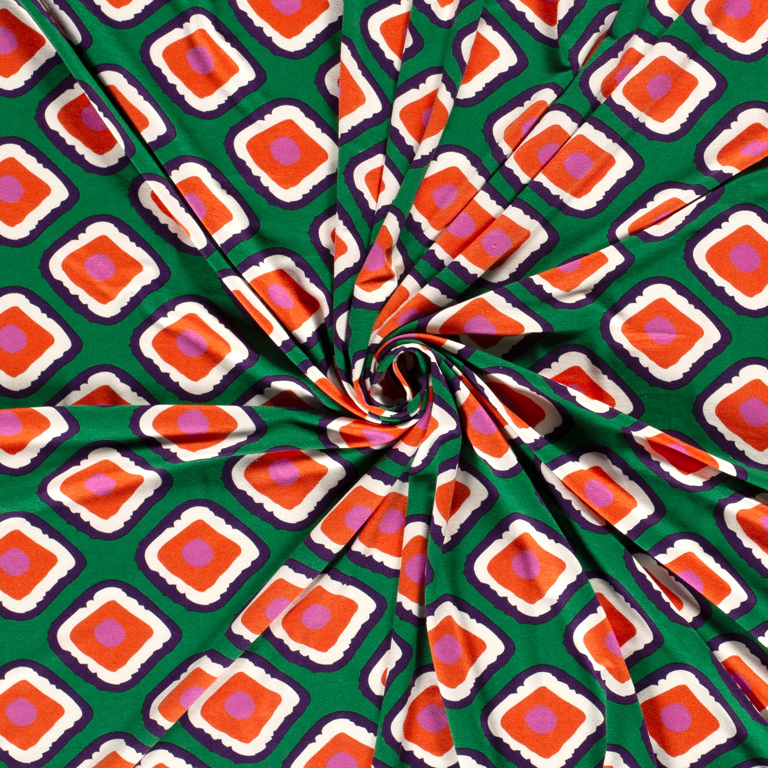 Viskoosijersey - retro-ruutukuvio pullojen vihreä