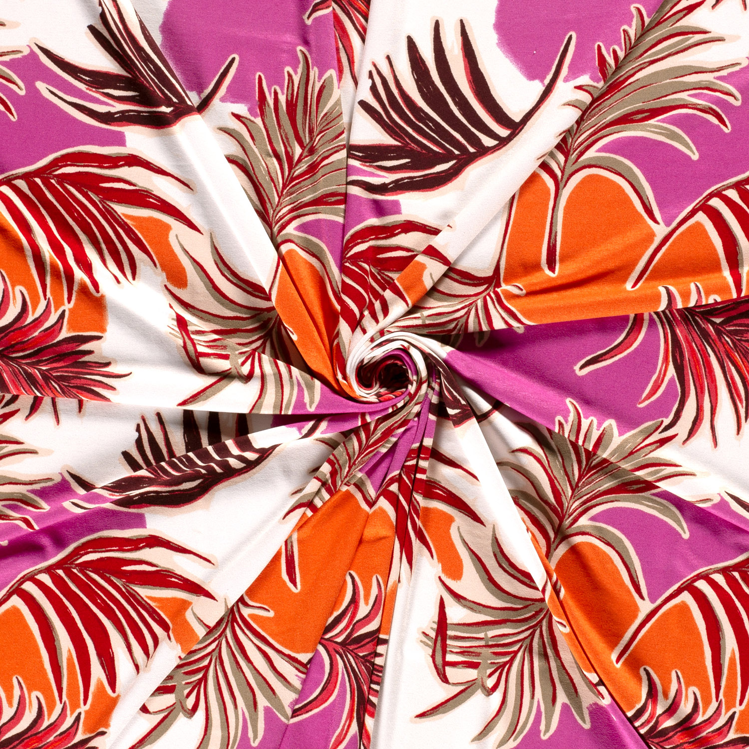 Tämä viskoosijersey laskeutuu ihanan pehmeästi ja myötäilee siluettia – ihanteellinen ilmaviin mekkoihin, feminiinisiin paitoihin, toppeihin, hameisiin tai mukavaan koti- ja vapaa-ajan pukeutumiseen. Hillitty mutta ilmeikäs ruoho-kuosi on monipuolinen yhdistettävä: joko vaaleiden luonnonsävyjen kanssa hillittyyn tyyliin tai voimakkaiden värien kanssa muodikkaaseen ilmeeseen.